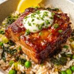 This Air Fryer Greek Lemon Chicken and Rice Bake is a flavorful, wholesome dish featuring juicy chicken thighs marinated in lemon, garlic, and herbs, cooked perfectly over tender rice in the air fryer. Ready in under an hour, it’s a nutritious and convenient meal inspired by classic Greek flavors, garnished with crumbled feta and fresh parsley for a vibrant finish.