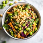 This Asian Edamame Peanut Crunch Salad is a vibrant and nutritious dish combining fluffy quinoa, protein-packed edamame, crunchy red cabbage, kale, and carrots, all tossed in a flavorful peanut dressing. Topped with roasted cashews, this salad offers a satisfying mix of textures and bold flavors, perfect for a quick lunch or a light dinner.