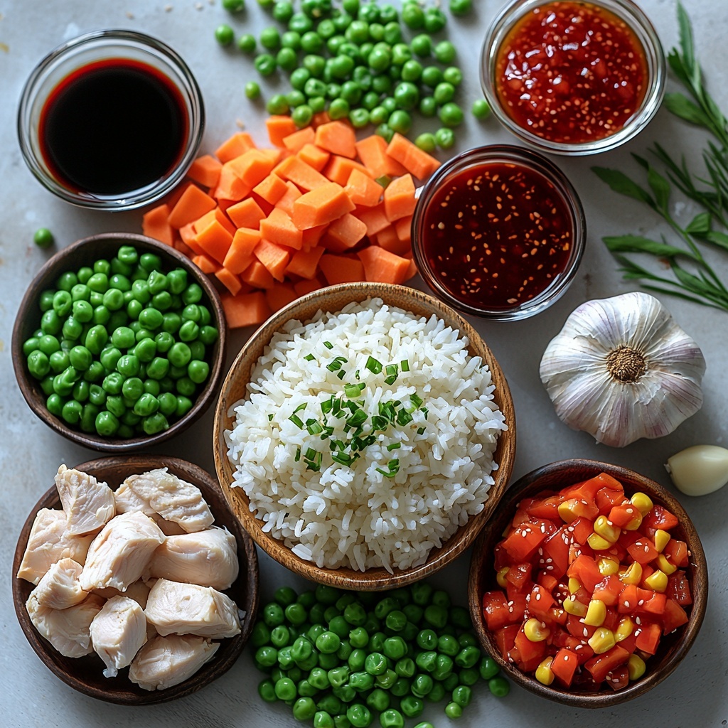 These ingredients are straightforward but absolutely essential to achieving that perfect balance of texture, color, and flavor in your Bang Bang Chicken Fried Rice Recipe. Each item plays a star role—from the fluffy jasmine rice to the luscious sauce components—so gathering these will set you up for success in the kitchen.