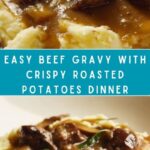 This comforting Beef Gravy Potatoes recipe features tender browned beef stew meat simmered in a flavorful homemade gravy with garlic, thyme, and bay leaves. Roasted golden and crispy potatoes are tossed and combined with the rich beef gravy, creating a hearty and satisfying dish perfect for a family dinner.