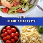 - Toss and Serve: In a large bowl or pot, combine the drained pasta, pesto sauce, roasted cherry tomatoes, and the remaining ½ teaspoon of salt to taste. Toss everything together well. Plate the pasta mixture, top with sautéed shrimp, toasted pine nuts, and a sprinkle of grated Parmesan cheese if desired. Serve immediately and enjoy!