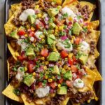 Once out of the oven, garnish your nachos with diced avocado, fresh pico de gallo, and chopped cilantro. Serve immediately with lime wedges on the side for that final burst of freshness and acid that perfectly complements the indulgent layers beneath.
