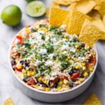 To elevate your Black Bean Corn Mexican Fiesta Dip Recipe, top it off with a few extra cilantro leaves and a sprinkle of crushed red pepper flakes or a handful of diced jalapeños for a touch of heat. A few lime wedges on the side not only make for a beautiful presentation but let guests add an extra zing if they wish.