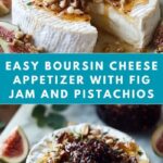This elegant appetizer features creamy Boursin Garlic & Fine Herbs cheese topped with sweet fig jam and crunchy pistachios. Served with crackers, sliced baguette, or fresh veggies, it’s a quick and impressive snack perfect for entertaining or casual gatherings.