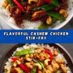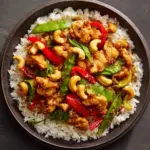 This Cashew Chicken Stir-Fry is a flavorful and quick Asian-inspired dish featuring tender chicken pieces, crisp vegetables, and crunchy cashews tossed in a savory-sweet sauce. Perfect for a nutritious weeknight dinner, it combines protein-rich chicken with vibrant bell peppers, broccoli, snap peas, and a deliciously balanced sauce made from soy, hoisin, and sesame oil.