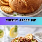 For a showstopper presentation, serve the Cheese and Bacon Dip Recipe in the hollowed-out sourdough cob bread, creating a bread bowl that guests can tear into or dip straight from. Alternatively, consider individual mini mason jars layered with dip and toppings for easy portion control and a cute party favor vibe.