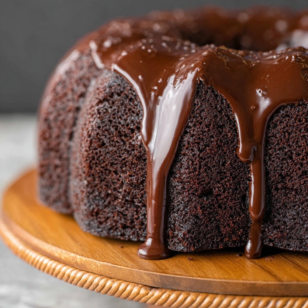 8. Decorate and serve: Drizzle the cooled Bundt cake with the chocolate ganache, letting it flow naturally down the sides. Slice the cake and serve immediately to enjoy its rich chocolate flavor.