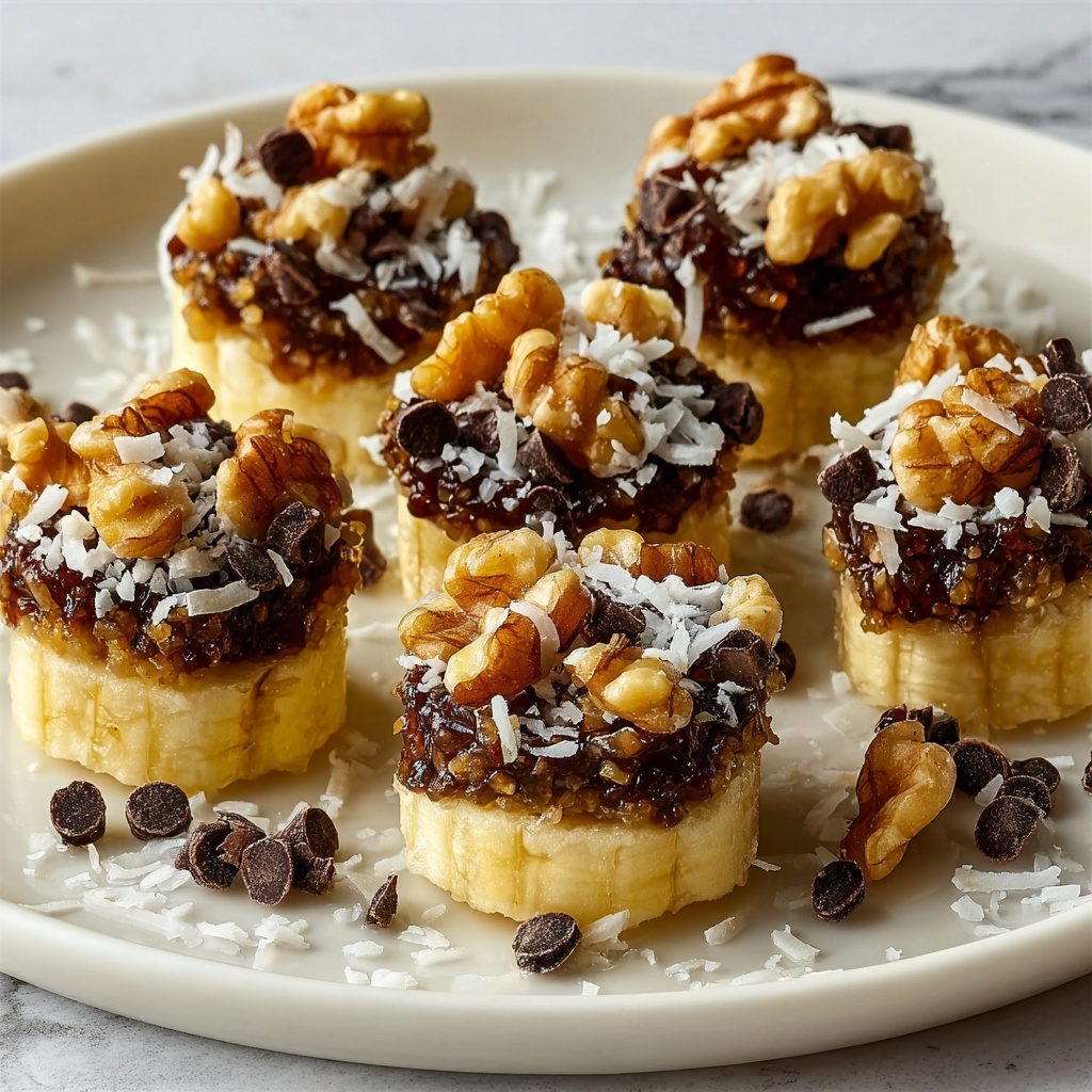 Chunky Monkey Banana Bites are a delicious and fun frozen treat featuring ripe banana slices dipped in rich melted chocolate and topped with crunchy walnuts, shredded coconut, and mini chocolate chips. These easy-to-make frozen snacks are perfect for a healthy dessert or an indulgent snack that combines fruity sweetness with a satisfying crunch.