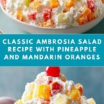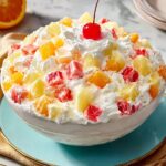 Classic Ambrosia Salad is a sweet and creamy fruit salad featuring a mix of mandarin oranges, pineapple, maraschino cherries, shredded coconut, mini marshmallows, and a whipped topping blend. This refreshing and easy-to-make dessert is perfect for gatherings and holidays, chilled to meld the flavors beautifully.