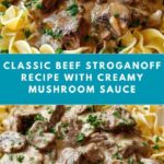 This Classic Beef Stroganoff recipe is a comforting and creamy dish made from scratch using tender strips of beef, sautéed mushrooms, onions, and a rich sour cream sauce. Served over buttery egg noodles, it’s a perfect hearty meal for family dinners or special occasions.