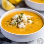 While freezing is an option, cream-based soups like this bisque can sometimes separate after thawing. If you choose to freeze, place the bisque in a freezer-safe container leaving some headspace. Thaw overnight in the fridge and reheat gently, whisking to help restore the silky consistency.