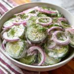 Because of the fresh cucumbers and creamy dressing, freezing is not recommended for this salad. Freezing would compromise the texture and separate the dressing, so it’s best to enjoy it fresh for optimal taste and texture.