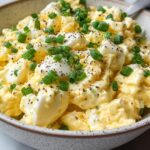 A classic, creamy egg salad recipe made with hard-boiled eggs, fresh herbs, and a tangy blend of mayonnaise and Dijon mustard. Perfect for sandwiches, wraps, or as a light lunch served chilled.