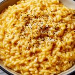 A rich and creamy pumpkin risotto that combines Arborio rice with smooth pumpkin puree and Parmesan cheese for a comforting autumn-inspired dish. This risotto is cooked slowly with white wine and warm vegetable broth to achieve a velvety texture and deep flavors, perfect for a cozy meal.