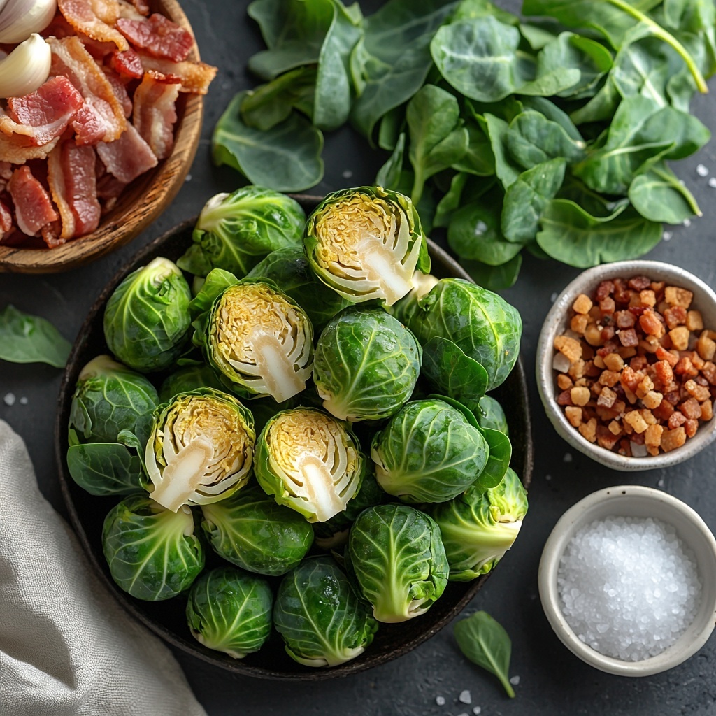- 4 oz. bacon: Provides smoky, savory fat that crisps up the Brussels sprouts perfectly.