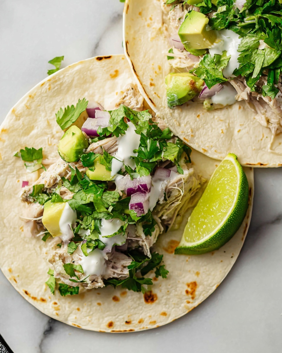 Once the chicken is cooked through and perfectly tender, pull it out with two forks to shred it into bite-sized pieces right in the crockpot. Taste a little and then stir in lime juice to brighten all the flavors and chopped cilantro for that fresh, herbaceous lift. Finally, season with salt and pepper to your preference—it’s the finishing touch that balances everything beautifully.