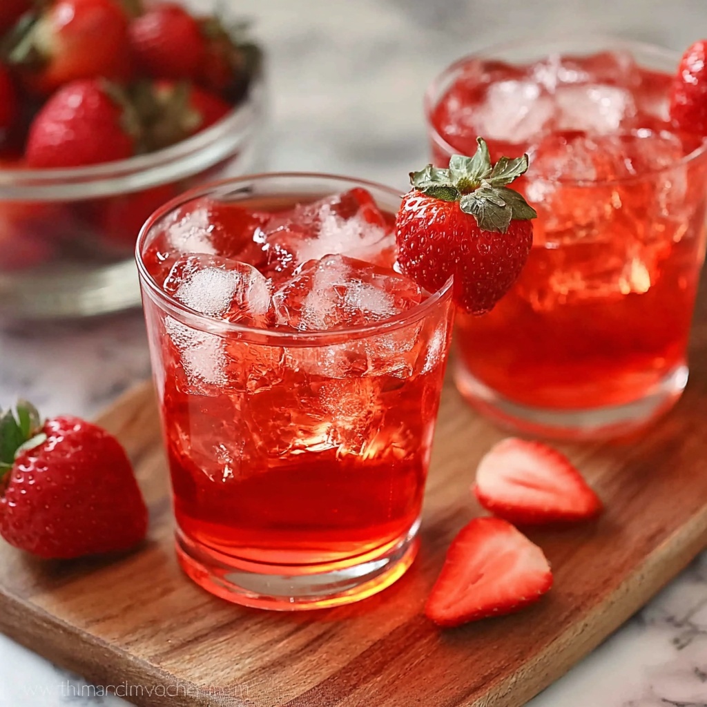 - Serve: Fill glasses with ice and pour the chilled Strawberry Sweet Tea over them. Garnish with fresh strawberry slices to add visual appeal and extra flavor.