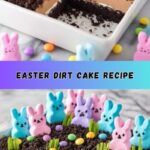 Easter Dirt Cake is a festive, no-bake dessert featuring layers of crushed Oreo cookies, creamy chocolate pudding filling, and topped with colorful Easter M&M’s and marshmallow PEEPS, creating a fun and delightful treat perfect for spring celebrations.