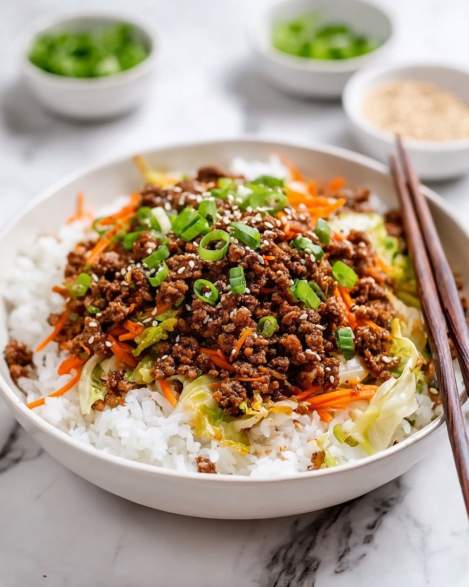 Give the stir fry a taste and season with salt and pepper as needed to bring out all those vibrant flavors. Serve it warm, framed with freshly sliced green onions and a sprinkle of toasted sesame seeds for that classic finishing touch that makes this Easy Asian Ground Beef and Cabbage Stir Fry Recipe truly shine.