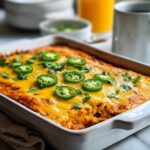 - Cool and Serve: Let the casserole cool for 5–10 minutes to set, then top with sour cream and garnish with chopped green onions or cilantro if desired. Serve warm.