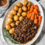 This pot roast pairs wonderfully with creamy mashed potatoes, buttery dinner rolls, or a crisp green salad to balance the richness. Roasted Brussels sprouts or sautéed green beans also complement the earthy flavors perfectly.