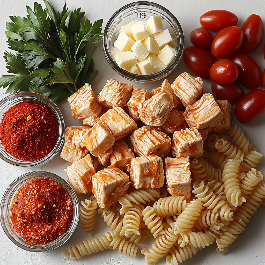 - 12 ounces rotini or fusilli pasta, dry: The twisted shape holds onto sauce for maximum flavor in every bite.