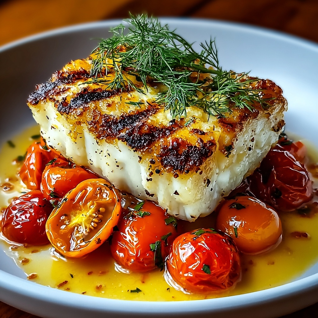This Grilled Cod with Roasted Tomatoes & Creamy Dill Sauce recipe offers a delightful combination of tender, flaky cod fillets grilled to perfection and paired with juicy roasted cherry tomatoes. Topped with a refreshing, tangy dill sauce made from sour cream and fresh herbs, this dish is simple to prepare yet bursting with fresh flavors, perfect for a healthy and elegant weeknight dinner or entertaining guests.