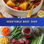 This hearty Vegetable Beef Soup combines tender chunks of browned beef chuck roast with a colorful medley of fresh vegetables simmered in a flavorful beef broth. Perfect for a cozy meal, it’s loaded with potatoes, carrots, celery, green beans, peas, and corn, seasoned with garlic, Italian herbs, and bay leaves. Slow-simmered to develop rich flavors, it offers a comforting and nutritious dish ideal for family dinners or meal prep.