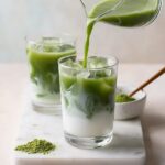 Fill two glasses generously with ice cubes, pour your preferred milk over the ice, and then add the chilled matcha mixture. Give it a gentle stir or swirl so the flavors mingle just right. You’ll notice the creamy milk and vibrant matcha perfectly blending to form a gorgeous layered effect that’s almost too pretty to drink—almost!