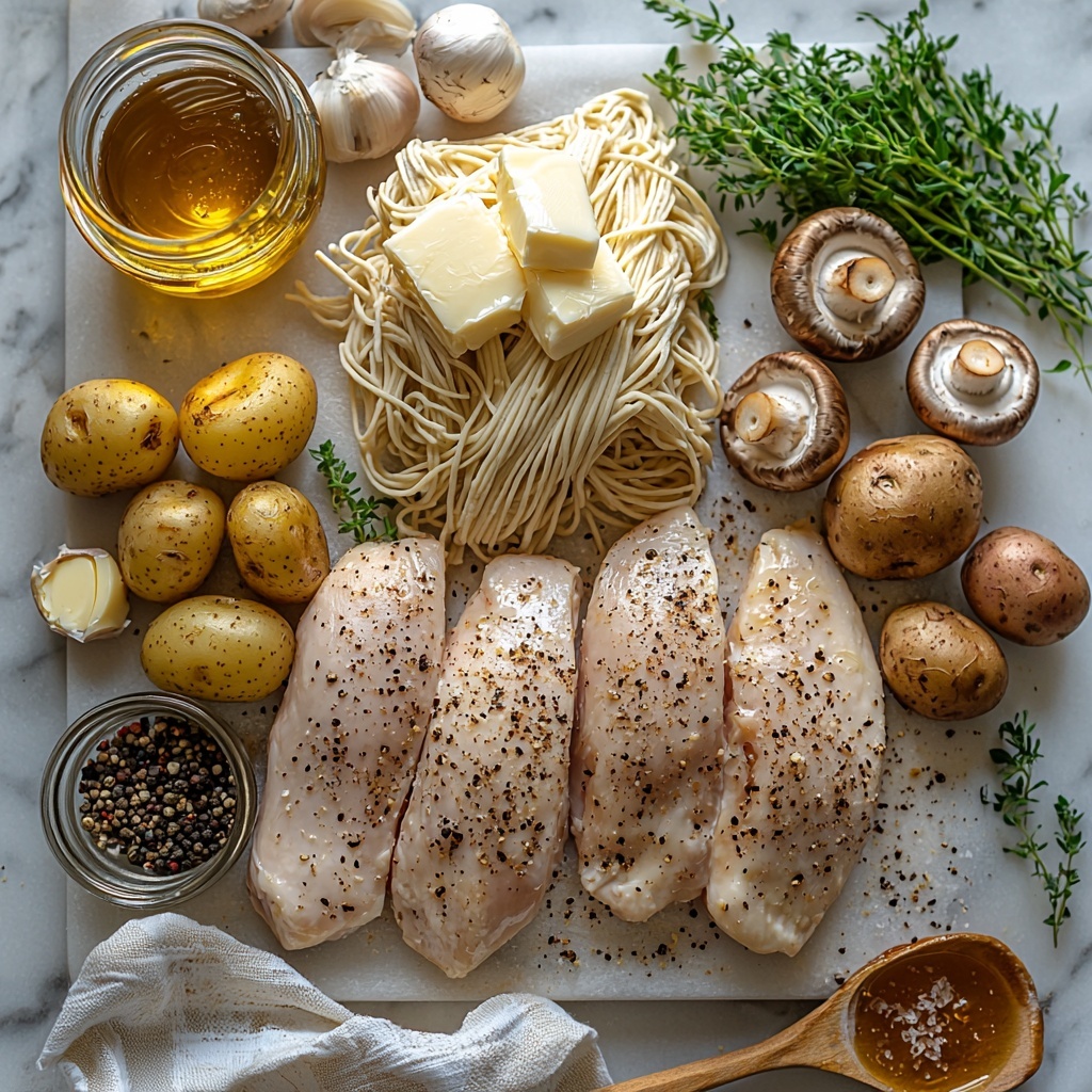 • Fettuccine or Linguine (gluten-free if needed): The silky, wide noodles that hold onto the creamy Alfredo sauce beautifully.