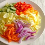 This Marinated Vegetable Salad is a vibrant and refreshing mix of crunchy cabbage, colorful bell peppers, crisp cucumber, carrot, and onion combined with a tangy, sweet, and salty homemade marinade. The salad is soaked in a flavorful vinegar-based marinade that softens the vegetables slightly while preserving their crunch, making it a perfect make-ahead dish to enjoy chilled or after marinating for a few hours. It’s great as a side dish or a light appetizer with a bright, zesty taste.
