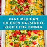 Once out of the oven, top your Mexican Chicken Casserole Recipe with diced avocado, juicy Roma tomato, and fresh chopped cilantro. These additions provide a vibrant contrast in texture and flavor that truly elevates the dish.