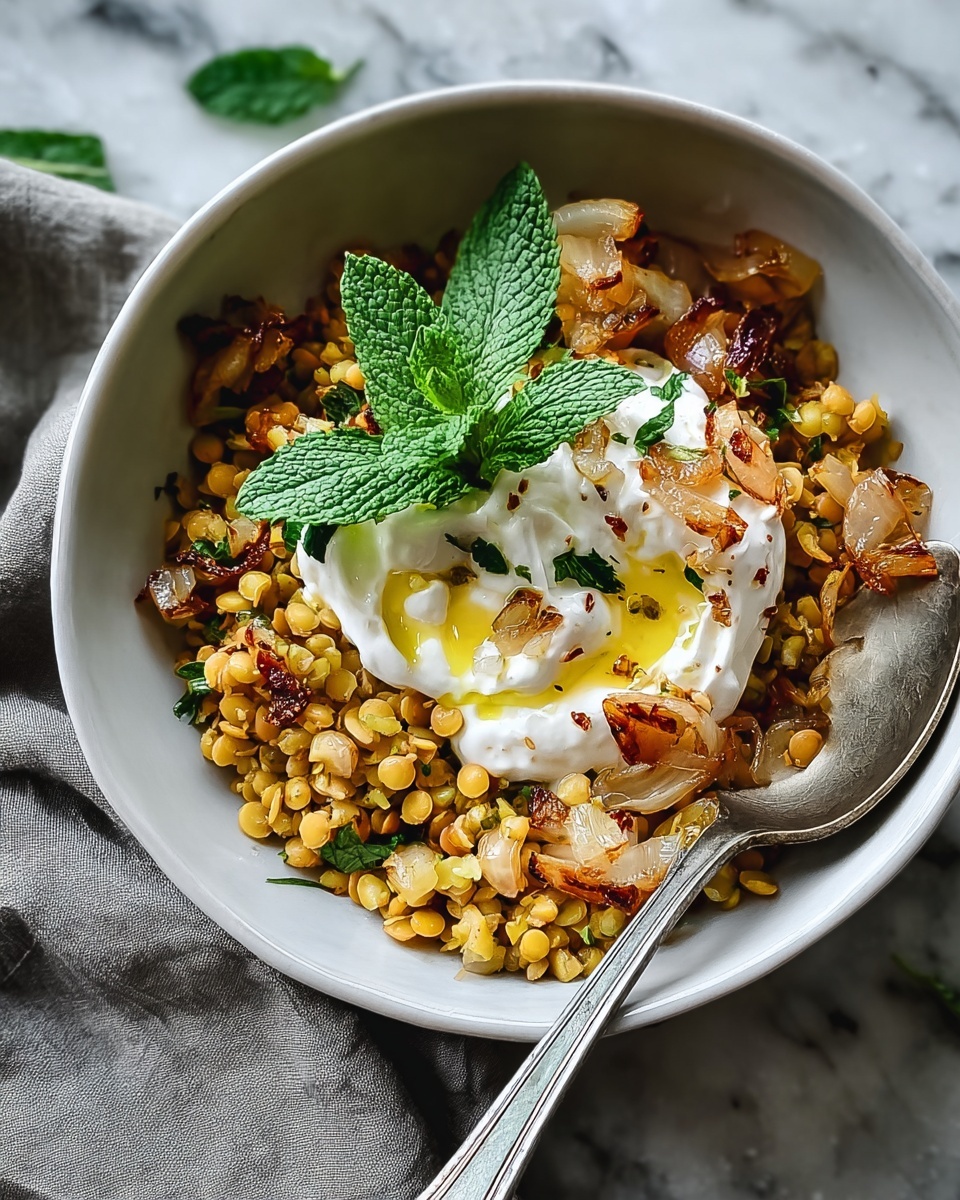 This dish pairs beautifully with simple sides like crispy pita bread or warm flatbreads to scoop up every bite of the yogurt and lentil mix. A fresh tomato and cucumber salad with a lemon vinaigrette complements the flavors without overwhelming the palate, making it a well-balanced meal.