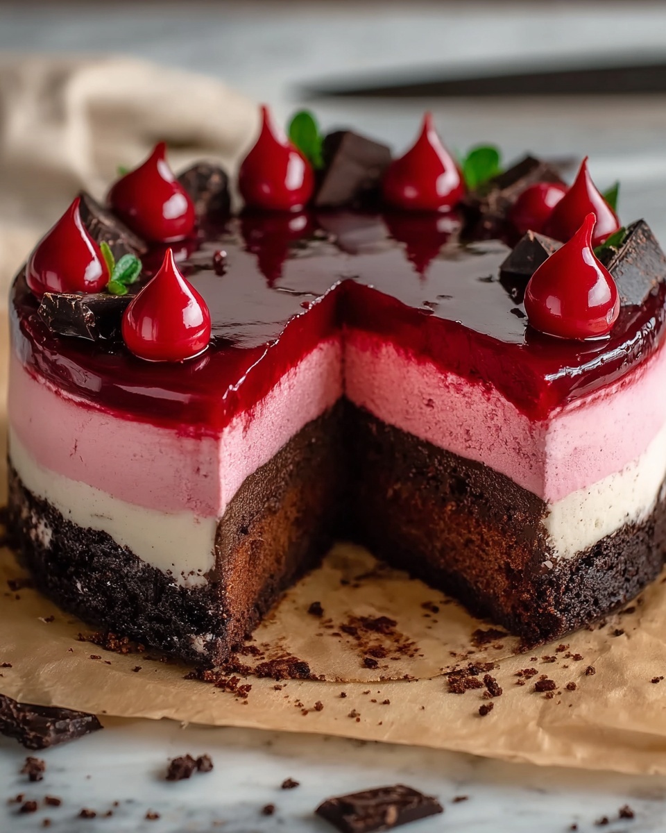 There is something truly special about this Red Velvet Cookie Dough Cheesecake Recipe that turns every dessert moment into a celebration. The way it combines luscious cheesecake, vibrant red velvet cookie dough, and irresistibly safe-to-eat cookie dough topping with chocolate chips feels like a dream come true for any dessert lover. I cannot recommend enough that you whip this up soon and share it with those you adore. Trust me, once you do, it’s going to become a beloved staple in your dessert repertoire.