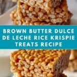These Rich Brown Butter Dulce de Leche Rice Krispie Treats are a decadent twist on the classic dessert, combining nutty browned butter, sweet dulce de leche, and gooey marshmallows for an irresistible chewy and crispy treat. Finished with a drizzle of dulce de leche and optional flaky sea salt for extra flavor contrast, these treats are perfect for satisfying your sweet tooth or impressing guests with a unique homemade dessert.