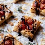 Once out of the oven, slice your creation into squares using a pizza cutter or a sharp knife for clean edges. Generously spoon your balsamic reduction over each piece. Serve immediately to enjoy the contrast of warm, flaky pastry with sweet, tangy balsamic and juicy roasted tomatoes.
