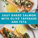 If you have any leftovers (which might be tricky!), place the salmon in an airtight container and refrigerate for up to two days. Keep the tapenade and feta mixture separate until you’re ready to serve again to preserve its fresh texture and flavor.