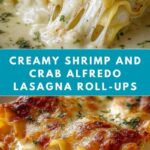 Delight in these creamy Shrimp & Crab Alfredo Lasagna Roll-Ups, combining tender lasagna noodles filled with a luscious seafood ricotta mixture, rich Alfredo sauce, and melted mozzarella for a decadent Italian-inspired dinner perfect for seafood lovers.