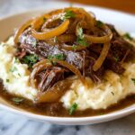 For a charming rustic presentation, serve the roast sliced thick alongside a generous mound of gravy-soaked mashed potatoes with the onions artfully arranged on top. Alternately, shred the meat to make savory sandwiches with horseradish cream or mustard for a delightful twist that stretches the meal across multiple occasions.