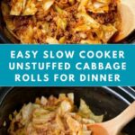 This Slow Cooker Unstuffed Cabbage Rolls recipe offers a convenient and comforting alternative to traditional stuffed cabbage rolls. Ground beef is browned with onions and spices, then combined with chopped cabbage and a flavorful tomato-based sauce before simmering low and slow in a crockpot until tender and delicious. Perfect for a hearty family meal served over rice.