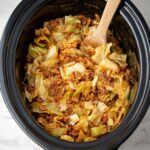 This Slow Cooker Unstuffed Cabbage Rolls recipe offers a convenient and comforting alternative to traditional stuffed cabbage rolls. Ground beef is browned with onions and spices, then combined with chopped cabbage and a flavorful tomato-based sauce before simmering low and slow in a crockpot until tender and delicious. Perfect for a hearty family meal served over rice.