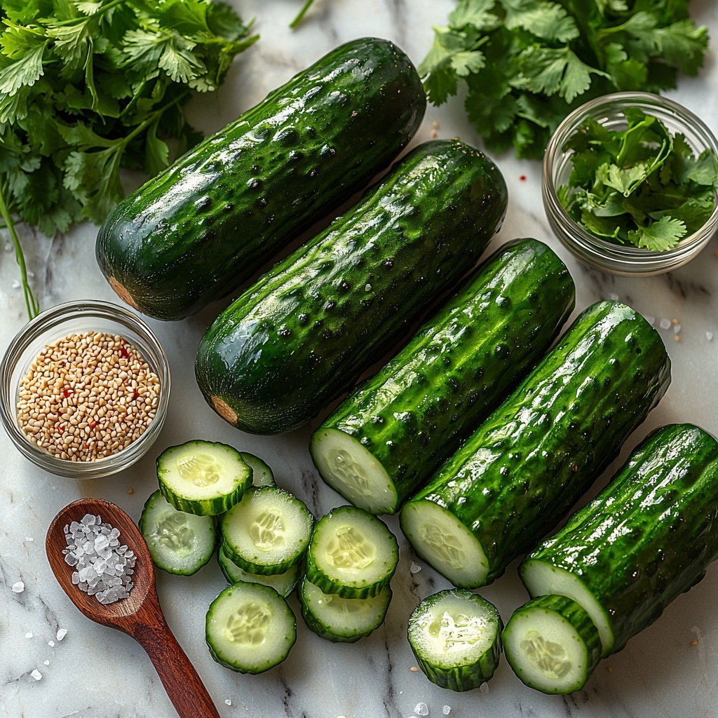 Start by gently smashing your cucumbers using the flat side of a knife or a rolling pin. This cracking technique breaks down the cucumber just enough to increase surface area, allowing the flavors to soak in beautifully while keeping that irresistible crunch.