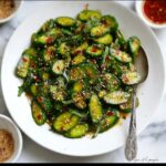 A quick and refreshing Smashed Asian Cucumber Salad featuring crisp cucumbers, a tangy and savory dressing, and a hint of spice. Perfect as a light side dish or appetizer, this salad combines the crunch of smashed cucumbers with aromatic garlic, sesame oil, and fresh herbs for a vibrant, flavorful bite.