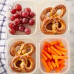 While soft pretzels can be frozen, it’s best to freeze them before preparing if you plan to store extras. Grapes and carrots should not be frozen when packed together here, as freezing affects their texture negatively.