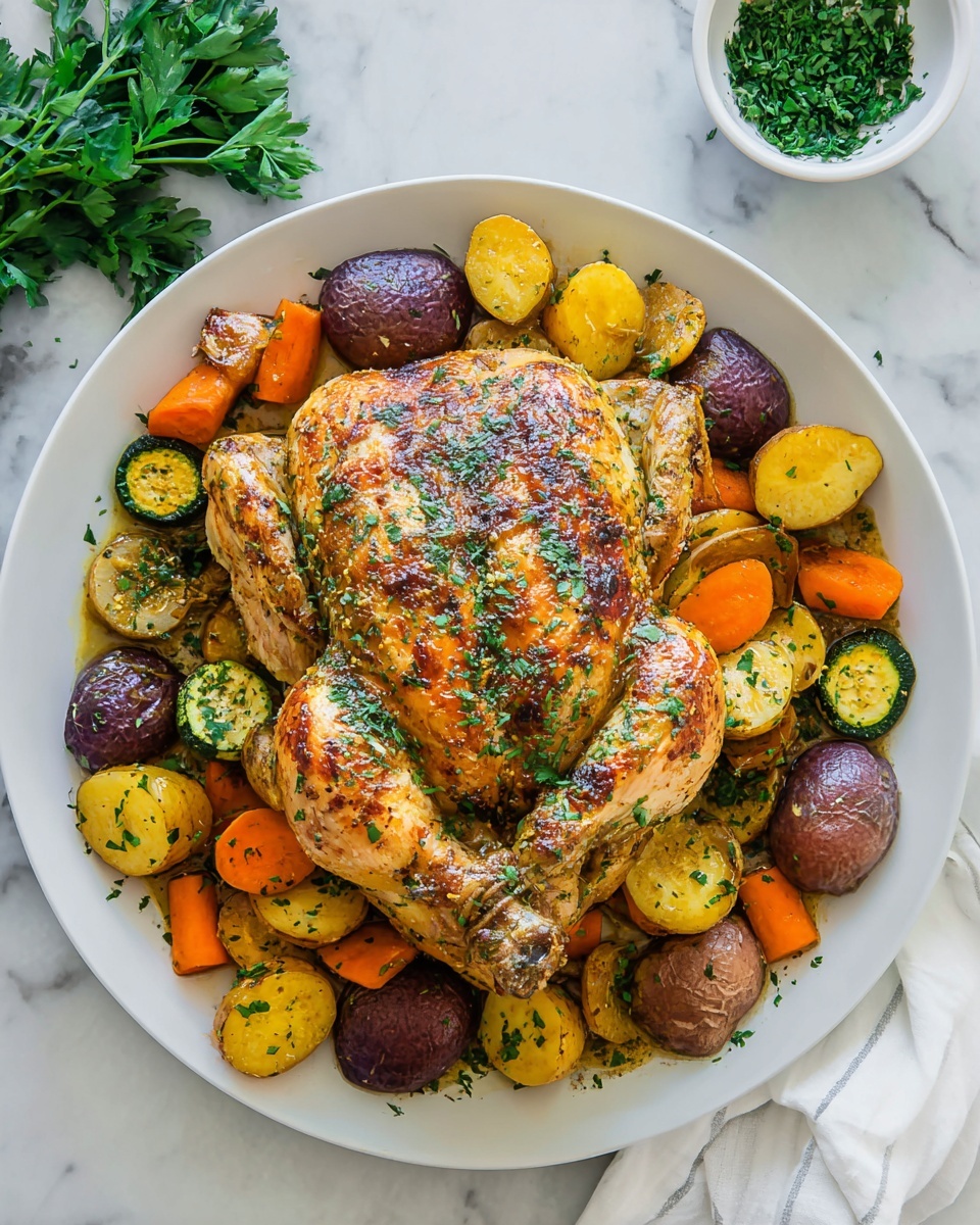 - Carve and serve: Cut the chicken into pieces and garnish with fresh herbs if desired. Serve with your favorite side dishes.