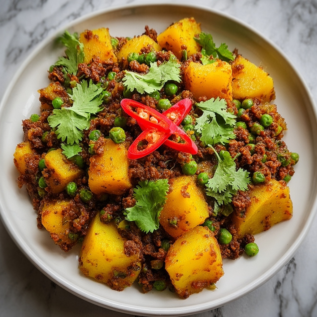 Spicy Indian-style Aloo Keema with Fluffy Spices Recipe
