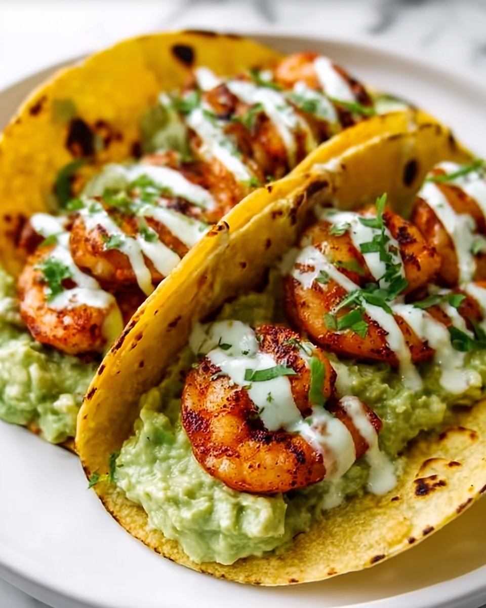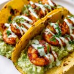 Warm your tortillas gently on a skillet or in the oven. Then, layer smashed avocado on each tortilla—this creamy base helps balance the heat. Add a generous spoonful of the garlic cilantro lime slaw, followed by the spicy shrimp. Sprinkle crumbled Cotija cheese on top and finish with a squeeze of fresh lime juice and a drizzle of the reserved sauce. These layers meld together beautifully, merging spice, creaminess, crunch, and zest in every bite.