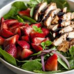 This vibrant Strawberry Chicken Salad with Balsamic Dressing combines juicy grilled chicken breasts with fresh mixed greens, sweet strawberries, tangy feta cheese, crisp red onions, and crunchy pecans. Tossed in a homemade balsamic honey dressing, this salad offers a perfect balance of flavors and textures, making it a refreshing and satisfying meal ideal for warm weather or light lunches.