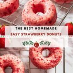 Delicious homemade strawberry donuts made with a moist strawberry cake mix and topped with a fresh strawberry glaze. Perfect for a sweet breakfast treat or dessert, these donuts combine the convenience of a cake mix with the fresh flavor of strawberries for a delightful, crowd-pleasing treat.
