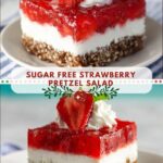 This Sugar Free Strawberry Pretzel Salad is a deliciously refreshing dessert featuring a crunchy pretzel crust topped with a creamy, sweetened low-fat cream cheese layer and a vibrant strawberry gelatin topping with real fruit. Perfect for those looking to enjoy a classic dessert without the added sugar, it combines sweet and salty flavors with a cool, fruity finish.